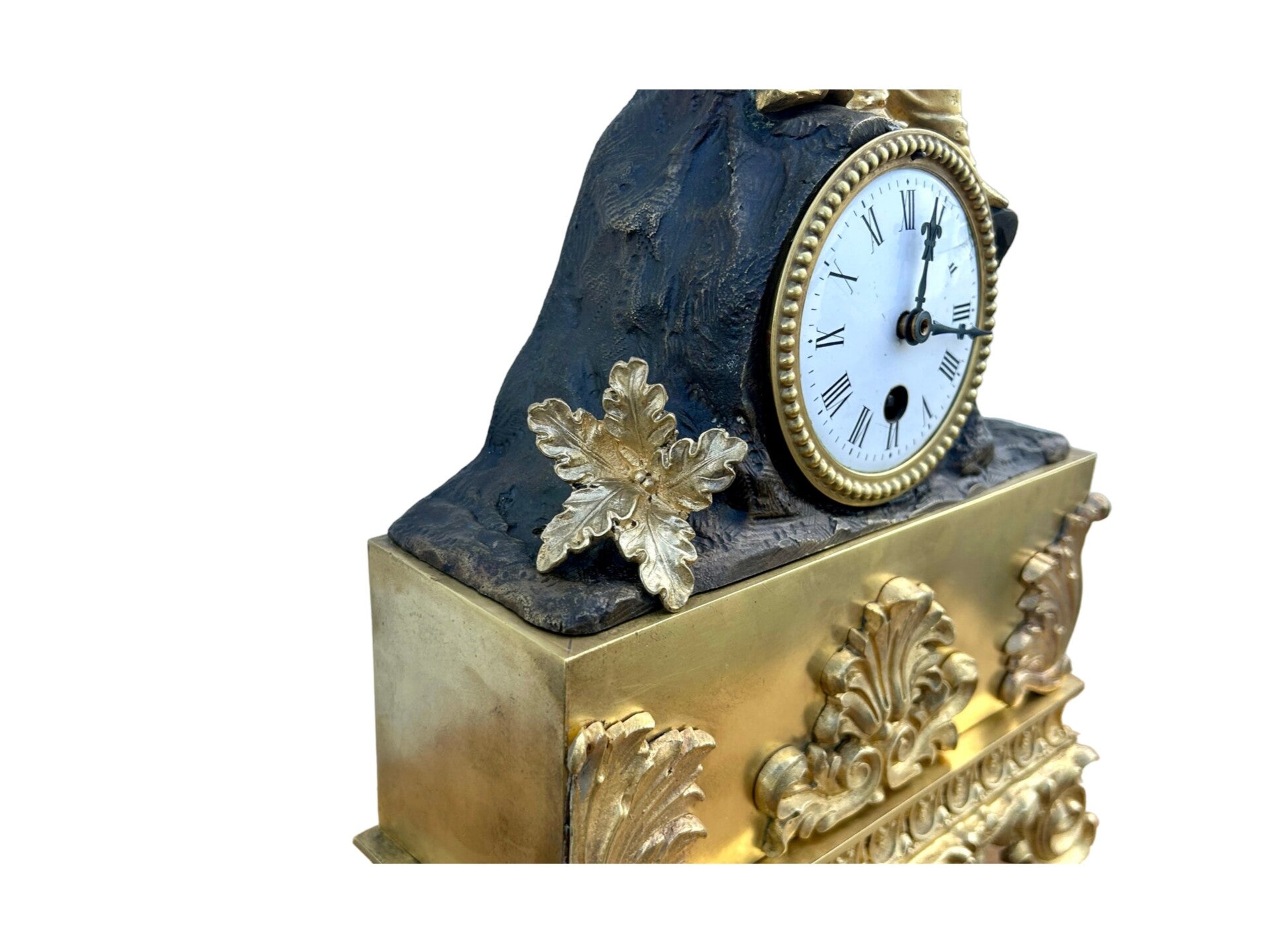 Omstreeks 1900 | Frankrijk | Mechanisch, Acht-daags uurwerk, Zonder slag | Compleet met opwind sleutel | Hoogte 38 cm | Breedte 28 cm | Diepte 10 cm
